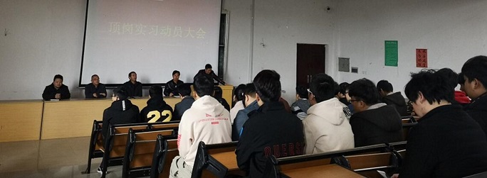 在动员会上,学工办主任周俊详细介绍了顶岗实习方案,阐述了顶岗实习的重要意义、实习单位安排、注意事项和相关要求,同时鼓励同学们在企业积极努力工作和学习,圆满完成顶岗实习任务。