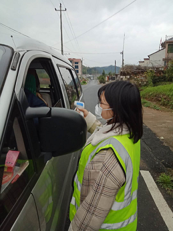 每天听从安排去各个路口执勤,对来往行人未佩戴口罩的进行劝告、测量体温并发放口罩,查验来往车辆有无通行证明,为车内人员测量体温。特别针对开门营业的商贩进行劝告,希望人人都能有自我防护意识,不让病毒趁虚而入。