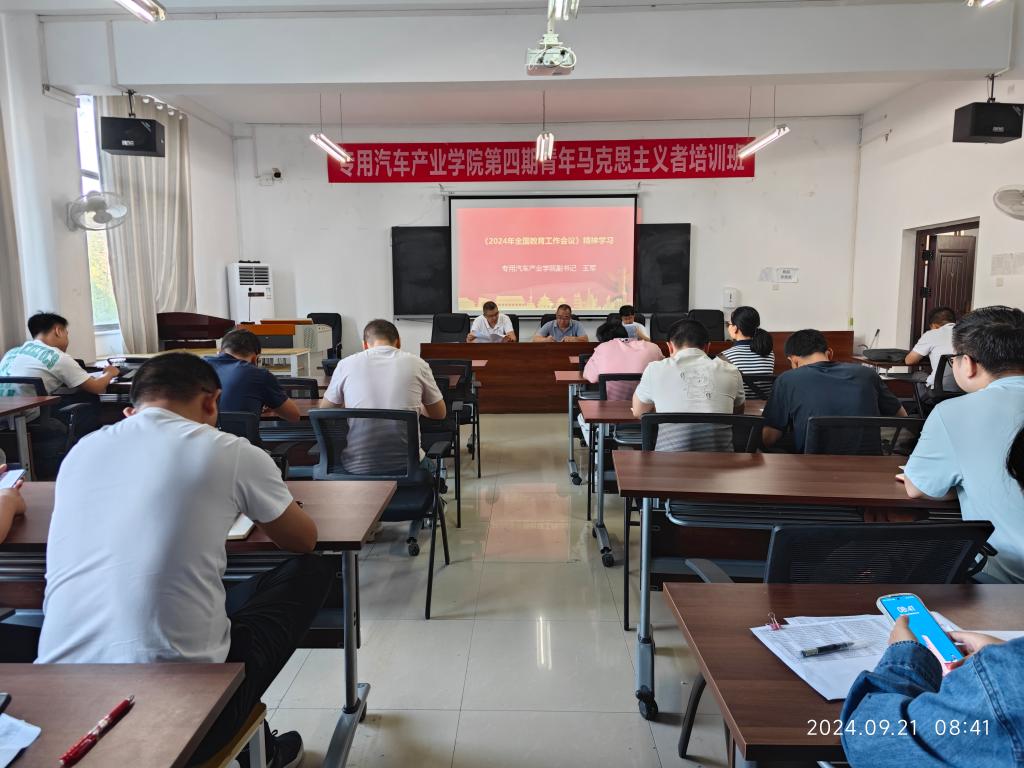2024年9月21日上午,专用汽车产业学院在2202会议室举行2024年第三次集中理论学习,专题学习研讨2024年全国教育工作会议精神。本次学习由党总支副书记王军领学,全体教师参加了学习。