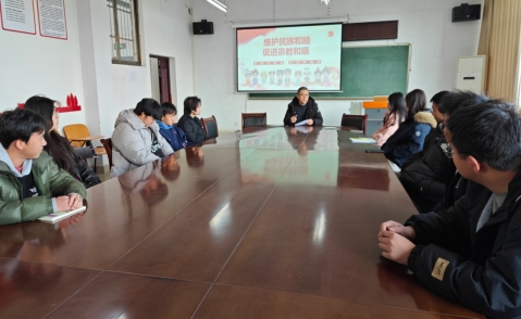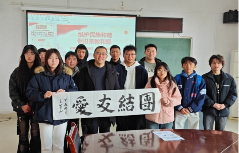 王军同志以通俗易懂的语言、鲜活的事例,为同学们阐释了“铸牢中华民族共同体意识的意义”“把握中华民族共同体意识的内涵”等重要内容,并和同学们讨论如何用实际行动铸牢中华民族共同体意识。同学们纷纷发言,表达了自己的观点。王军强调我们应以铸牢中华民族共同体意识为主线,坚定对伟大祖国、中华民族、中华文化、中国共产党、中国特色社会主义的认同,不断强化铸牢中华民族共同体意识的思想基础。