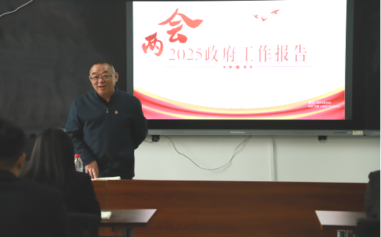 开班仪式后,贺剑以“两会政府工作报告”为主题,进行开班仪式的第一讲。全体青马学员、学生骨干参加了第一课学习。