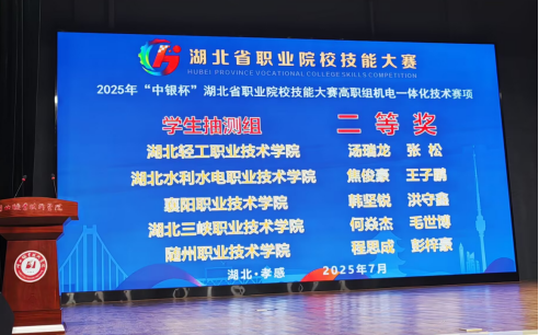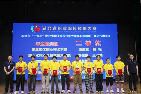 7月4日,2025年湖北省职业院校技能大赛(高职组)“机电一体化”赛项在湖北职业技术学院圆满落幕。随州职业技术学院专用汽车与应急产业学院学生团队表现优异,机电一体化技术专业学生程思成、彭梓豪组成的参赛队获抽测组二等奖。