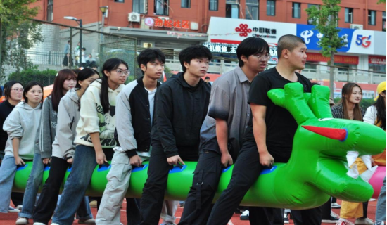 除激烈的竞技项目外,我院学子于集体项目中亦展现出强大的凝聚力。在陆地龙舟比赛现场,随着裁判哨声响起,队员们齐声喊出“一二、一二”的口号,脚步协同向前迈进,龙舟于地面快速“飞驰”。在不倒森林项目里,队员们同步松开手中长杆,迅速转身接住相邻队友的杆子,整套动作连贯流畅,长杆始终直立未倒。