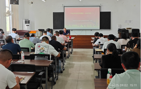2025年9月2日,专用汽车与应急产业学院在2202会议室举行2025年第四次集中理论学习,专题学习研讨:习近平论经济建设 (2025年)。本次学习由党总支书记贺剑领学,全体教师参加了学习。