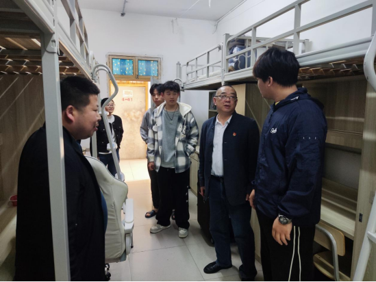 座谈会后,学院领导与老师们并未止步于活动室,而是随即开启了“深入寝室·温情走访”行动。在走访过程中,领导们不仅仔细检查了宿舍的卫生状况与安全隐患,强调校园安全底线,更与同学们拉起了家常。从询问“最近饮食起居怎么样”到关心“室友关系是否融洽”,领导们细致入微地观察学生精神状态,将关怀送到每一个床位前。
