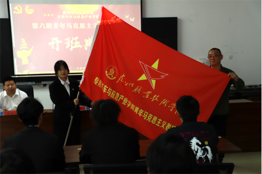 在庄重的团歌中,开班仪式正式启动。贺剑宣布开班并向学员代表授旗,学员代表郑重表态,将不负重托,以实际行动践行青春誓言,为学院发展和社会进步贡献力量。