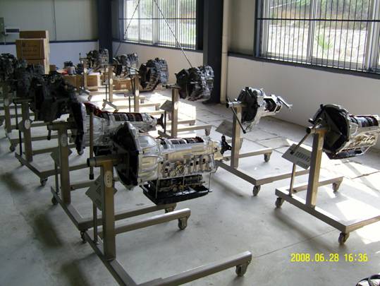 汽车实训车间发动机拆装区