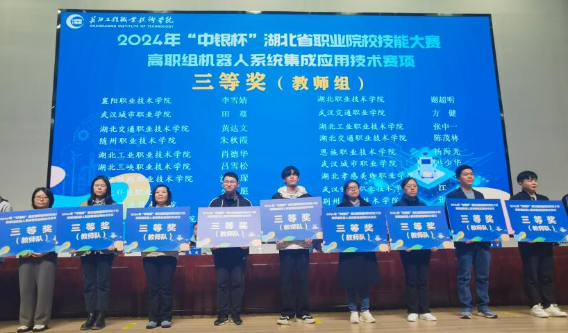 近日,由湖北省教育厅举办、长江工程职业技术学院承办的“机器人系统集成应用技术”赛项圆满落幕。专用汽车产业学院教师组朱秋霞、龚素芬获得三等奖;学生推荐组张家忠、李思京获得三等奖,抽测组谌雨欣、罗付豪获得三等奖。