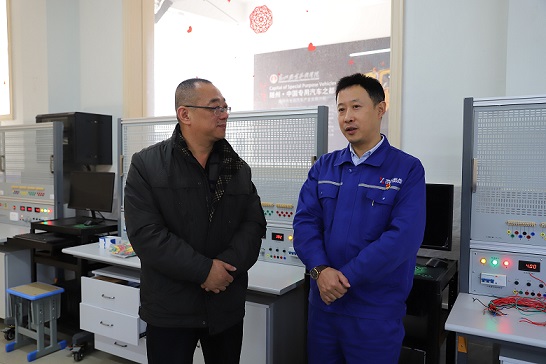 洽谈会上,贺剑介绍了我院专用汽车制造专业群设置、师资队伍、实训条件及人才培养等基本情况,双方围绕职工培训、技能提升、职工培训教材开发等企校深度合作进行了交流探讨。会后,贺剑陪同参观了专业群新建的开放式电工实训室。姜茂军说,汽车与机电工程学院专业群人才培养对接汽车产业,实训教学理念先进,技能教学趋向智能化数字化,适应企业高技能人才需求发展趋势。