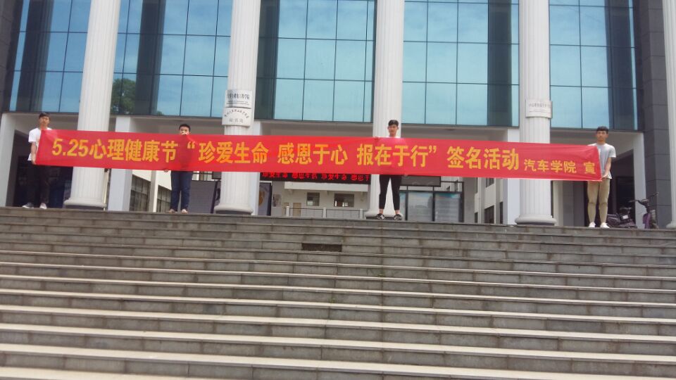汽车学院历来重视心理健康教育工作,每年5月份都举办“5.25”心理健康教育节活动。本次教育节活动以“珍爱生命,感恩生活”为主题,旨在引导学生尊重自己和他人的生命,懂得生命的价值;培养学生直面挫折,战胜困难的勇气;学会感恩他人,感恩社会,感恩美好生活。