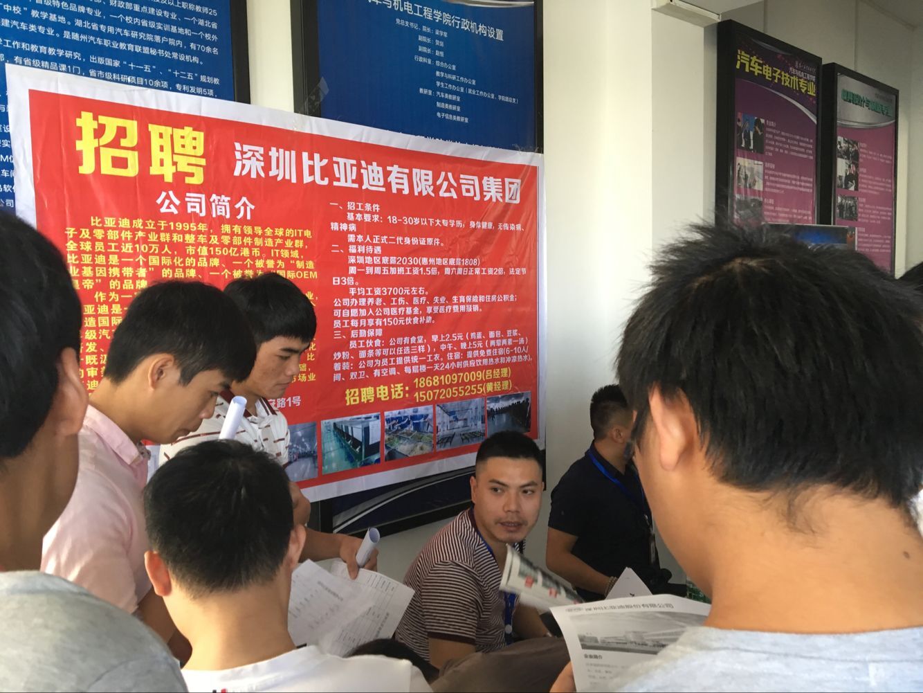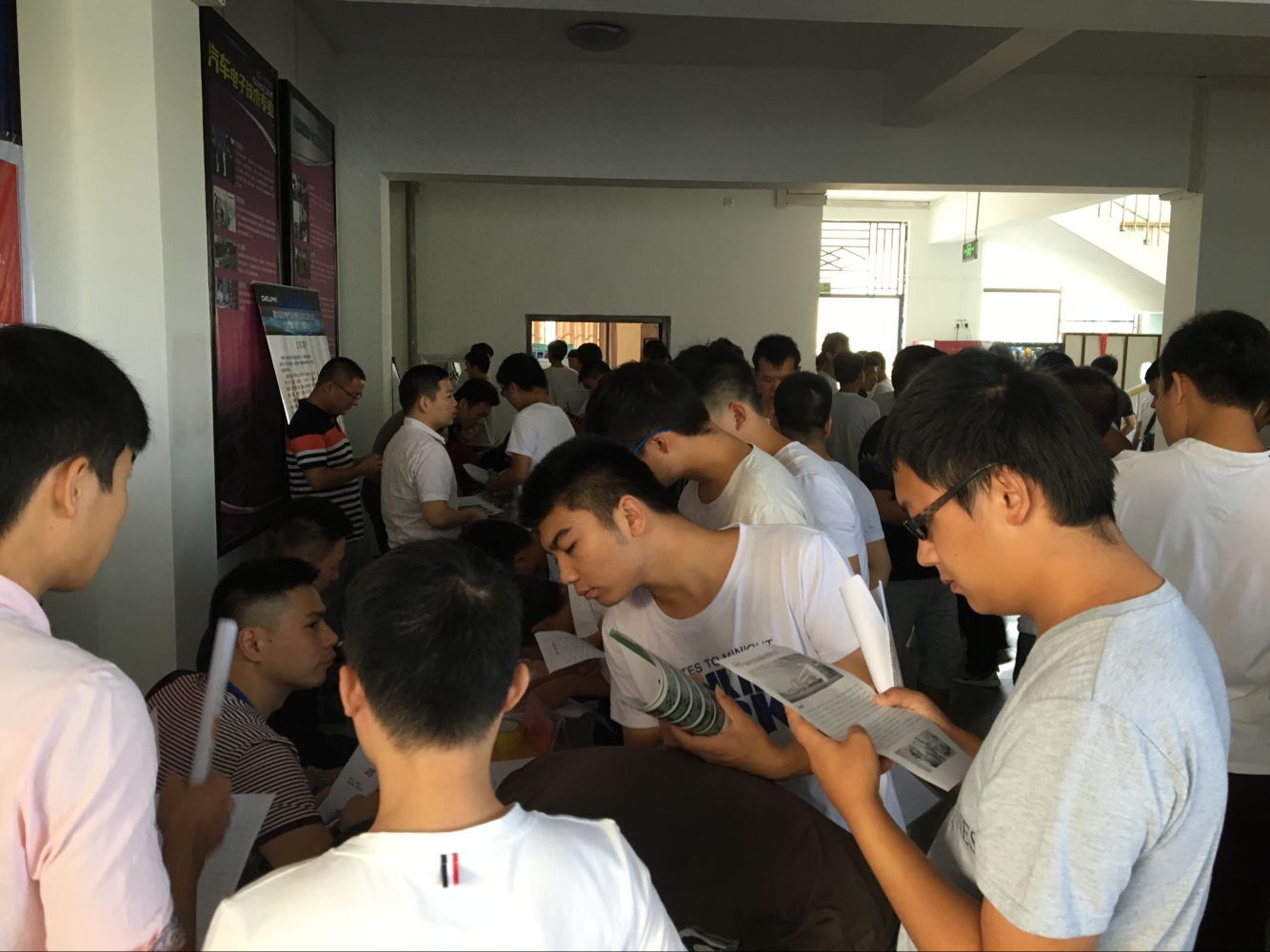 为了更好地拓宽毕业生就业渠道,2016年9月18日,我院在2号楼2120举办毕业生双向选择招聘会。浙江吉利控股集团有限公司、比亚迪股份有限公司、德尔福派克电气系统有限公司、武汉恒通汽车线束有限公司、宁波信泰机械有限公司、佛吉亚排气控制系统有限公司(宁波)、上海汽车集团股份有限公司乘用车公司等十多家企业公司来我院招聘人才,大约有200位毕业生参加了本次招聘会。