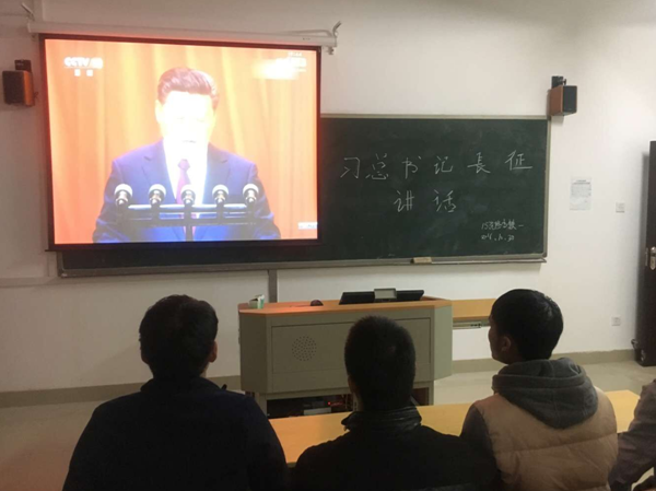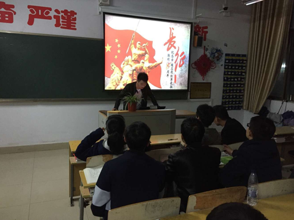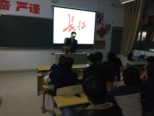 “1934年10月,中央红军为了摆脱国民党军队的“围剿”,被迫实行战略大转移进行长征。爬雪山、过草地行程约二万五千里...完成北上抗日的战略部署...”来自15级机电班的班长杨晨同学率先演讲。他通过播放PPT加上自己激情的演讲,获得了同学们热烈的掌声。其他班级也通过各种各样的形式开展活动,有诗歌朗诵、观看影片、分组讨论等等,同学们无不被革命先烈的不怕困难,勇往直前的长征精神所鼓舞。