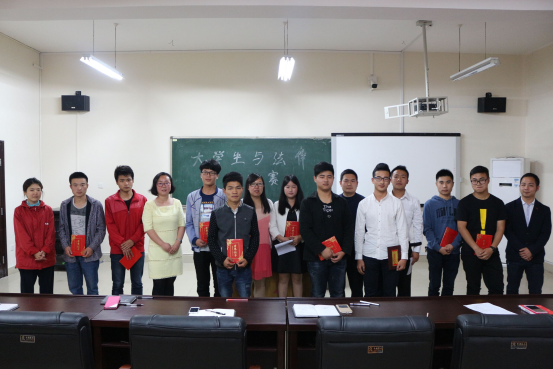 (本网通讯员周俊、刘立军报道)2016年4月27日下午4点,由汽车与机电工程学院学工办主办的"大学生与法律"演讲比赛决赛在少农楼2120教室隆重举行,汽院学工办周俊、陈达、辅导员徐浩、刘芬、刘立军以及特邀嘉宾李河静老师出席并担任评委。