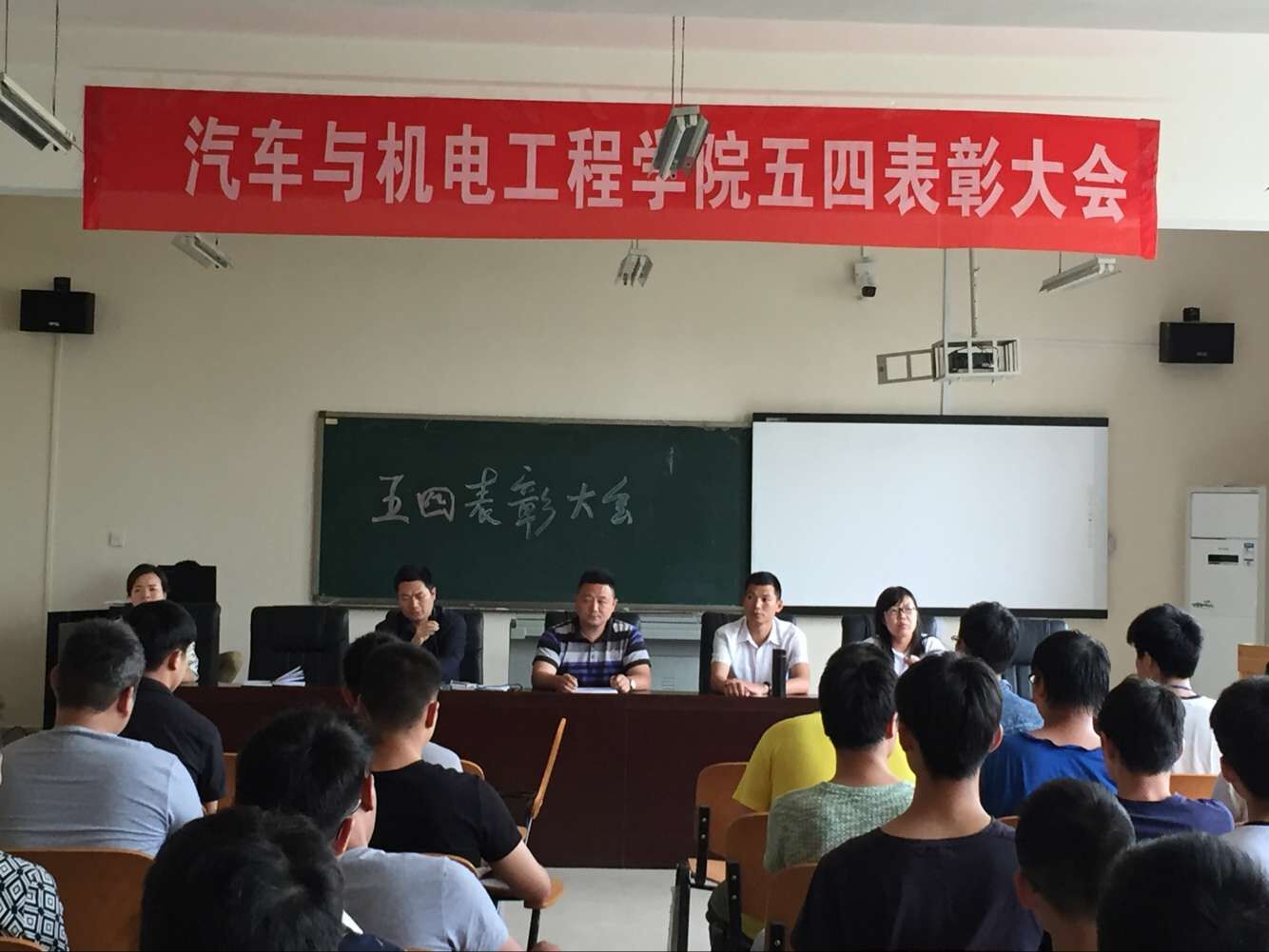 紧跟时代,肩负使命,锐意进取。5月4日下午,汽车与机电工程学院纪念五四运动97周年,暨共青团五四表彰大会在2号楼2120召开。汽车与机电工程学院副院长赵恒、学生科科长周俊、就业科科长吴付勇和刘芬、张丽霞、刘立军三位辅导员出席了此次表彰活动。