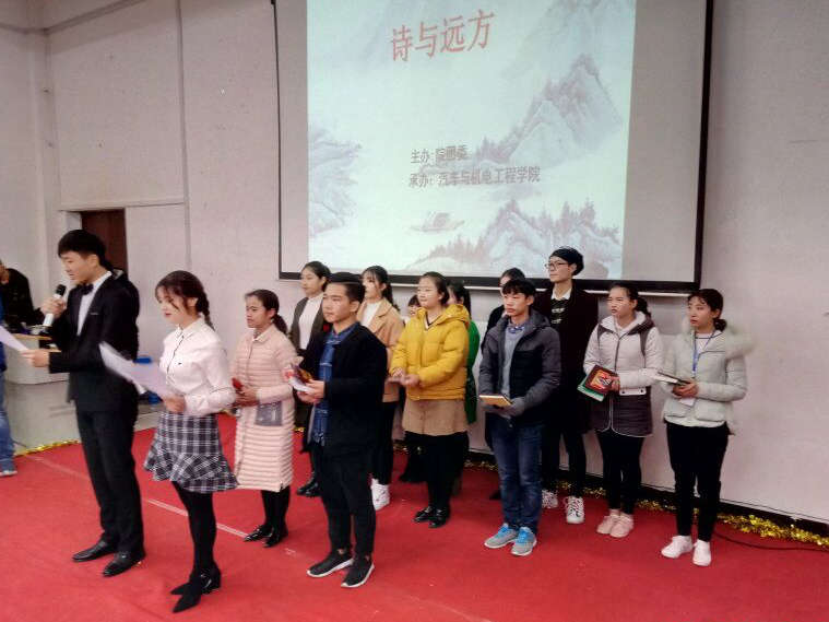 值第十二届校园文化艺术节之际,由院团委主办、汽车与机电工程学院承办的“诗与远方”诗歌朗诵决赛于12月13日在云桂楼4203举行。