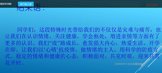 由于当前防疫形势的影响,此次525心理健康教育主题班会采取在校生正常在教室开班会,非在校生线上班会形式开展。班会内容涵盖防疫期间常见的心理问题及解决方法,疫情以来所见、所闻、所思、所想、所悟、人生价值取向等等,班级内开展辩论、同学讨论。