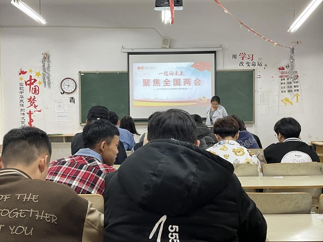 主题班会上,各班辅导员为同学们介绍“两会”的基本情况,讲解“两会”小知识,而后进一步讲解2022年全国“两会”的情况,解读“两会”精神,强化责任担当。让同学们了解到我国在2021年的发展成就:经济保持恢复发展、创新能力加强、经济结构和区域布局继续优化、改革开放不断深化……与此同时我国发展也面临着重大挑战。