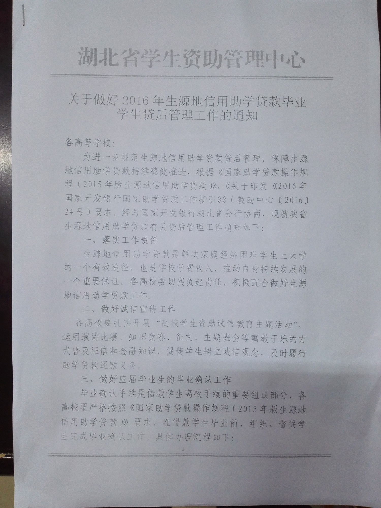 关于做好2016年生源地信用助学贷款毕业学生贷后管理工作的通知