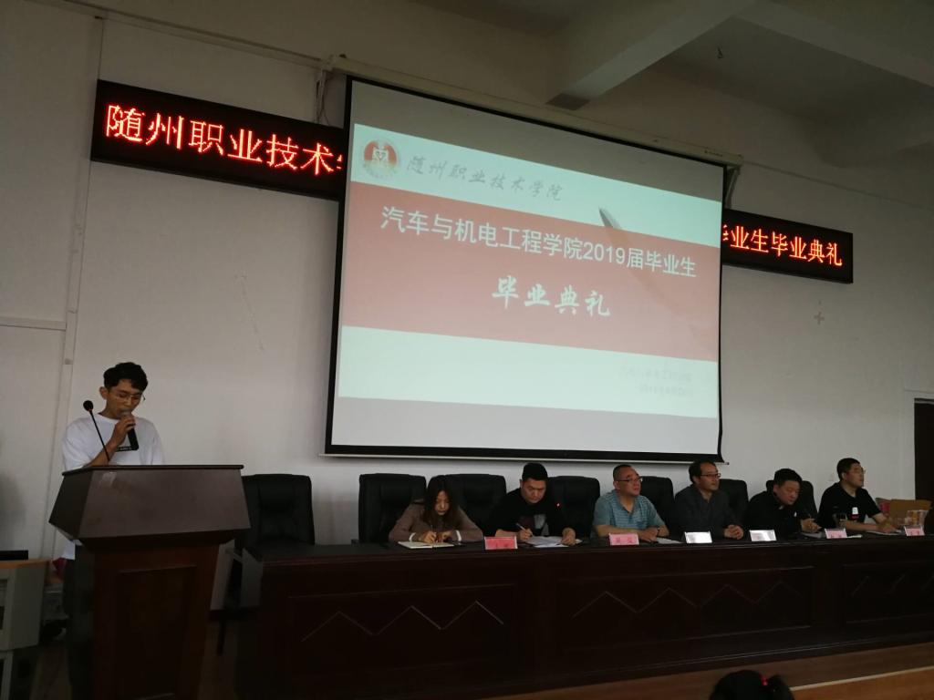 接下来,汽车与机电工程学院学生会精心准备了合唱《光阴的故事》送给2019届毕业生,并对他们表达了深深的祝福。到场的全体师生还共同欣赏了毕业视频,视频再现了同学们在随州职业技术学院生活、学习的点点滴滴,记录了汽车与机电工程学院以党总支书记张术同志为代表的全体老师对同学们的谆谆教导和祝福。