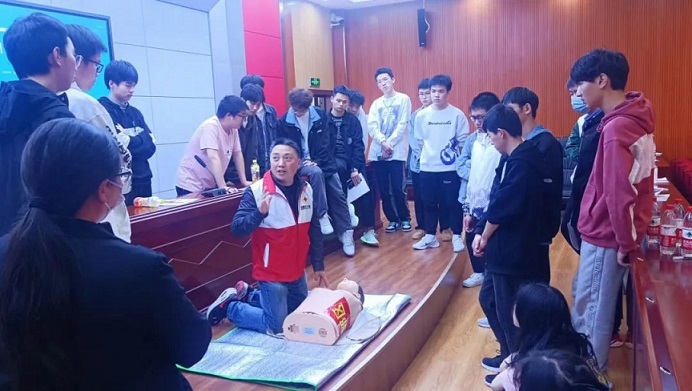 培训现场,老师们对红十字会基本知识、创伤救护、常见急症、意外伤害、救护原则及规范的施救程序等基本急救知识进行了细致的讲解,对心肺复苏和创伤救护进行了讲解及模拟演示。在实践操作环节,我校参训学员热情高涨,兴致勃勃地练习止血包扎、心肺复苏、海姆立克急救法等急救技能。所有培训内容结束后,我校共有122名学生通过理论及实践考核,取得初级救护员证。