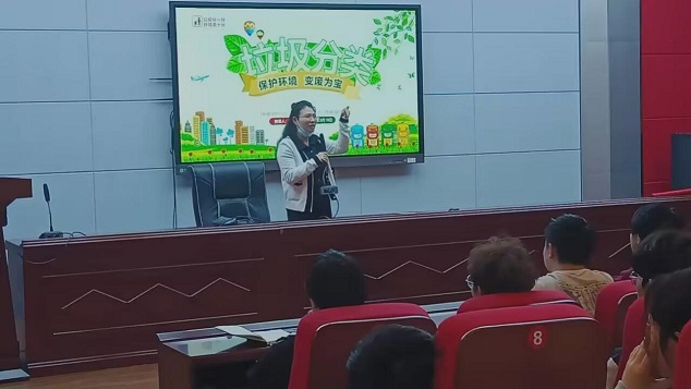 专用汽车产业学院陈媛在宣讲时,从全国的垃圾现状入手,让同学们了解到目前垃圾处理面临的严峻形势,强调垃圾分类投放的宣传工作已经迫在眉睫,点明校园、教室、寝室随处可见的垃圾分类回收点。同时,她还通过“垃圾的前世今生”视频生动地讲解了国家目前使用的四种垃圾分类方法。在宣讲的尾声,她表示,每个人都是垃圾的制造者,又是垃圾的受害者,更应该是垃圾的治理者!垃圾分类事小但成效大,对于不能降解的垃圾可采用变废为宝的方式。垃圾分类并不难,只需做到了解、行动。