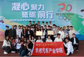 2024 年 10 月 24 日至 25 日,随州职业技术学院第二十届田径运动会在田径运动场盛大举行,专用汽车产业学院院师生运动员代表学院出征。