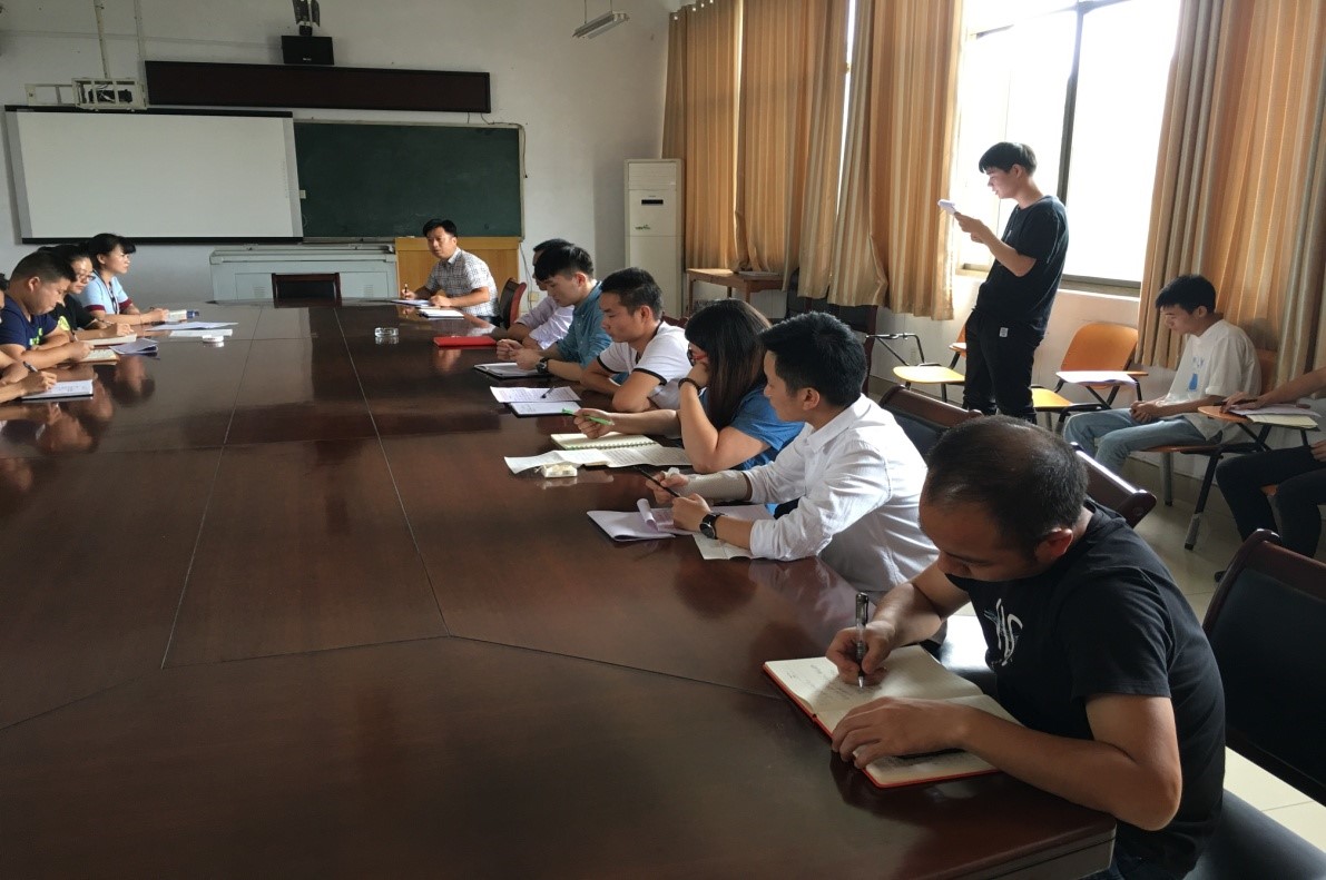 (本网讯  通讯员周俊报道)921日下午3点,汽车学院学工支部组织我院20余名入党积极分子举行思想汇报,听取他们近期思想和表现情况,汽车学院党总支副书记夏章建、学工支部书记周俊,全体辅导员参加会议。