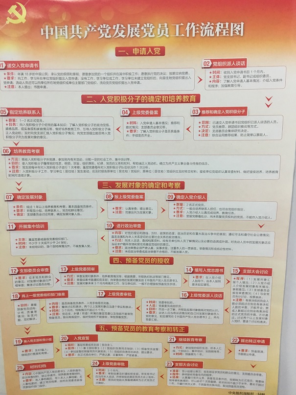 21、继续教育考察; 22、提出转正申请; 23、支部大会讨论; 24、上级党委审批; 25、材料归档。
