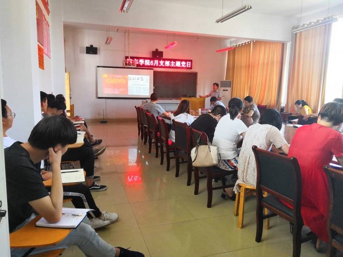 首先,党总支副书记夏章建同志讲党课《学习习近平总书记人民情怀 争做合格高校思政管理者》。他从四个方面进行了讲述,一是汇报党校学习两月总体内容:历史维度学习新思想,全面学习新思想内涵内容,实践践行新思想;二是学习习总书记的人民情怀:总书记7年知青岁月树立初心、心系人民,总书记正定3年牢记使命、造福人民;三是党校异地培训江阴之行体会;四是个人工作之思考:新形势下学生管理工作的认识,以及一年以来主抓几项工作和对后期工作的思考。