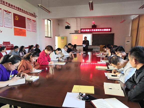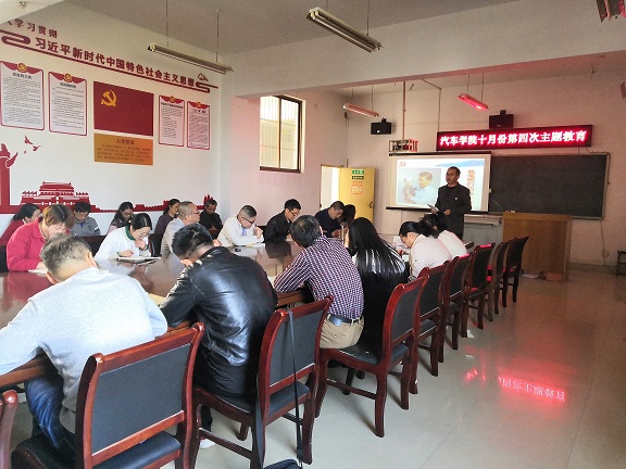 11月1日下午,汽车与机电工程学院党总支在2311召开十月份第四次“不忘初心、牢记使命”主题教育活动。党总支书记张术为大家上了一堂生动的主题党课《不忘初心 做合格党员》。