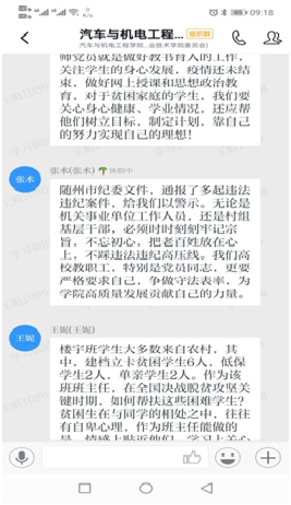 通过本次学习,大家表示,今年是决胜全面建成小康社会的收官之年,脱贫攻坚是一场硬仗,我们要不折不扣落实中央和国家关于教育扶贫相关政策,对困难学生群体进行帮扶,帮助他们成人成才,自立自强,助其家庭早日脱贫,尤其在疫情期间,更应关心学生,关心他们的身心发展。最后,总支书记强调:随州市纪委通报的多起违法违纪案件,给我们以警示,大家必须时时刻刻牢记宗旨,不忘初心。我们高校教职工,特别是党员同志,更要严格要求自己,争做表率,为学院高质量发展贡献自己的力量。