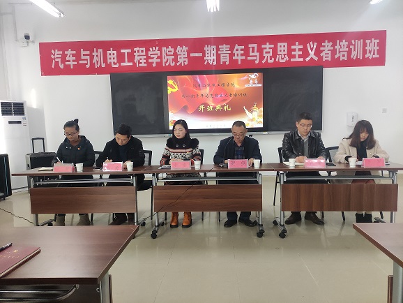 为加强我院共青团基层组织建设,深入推进团中央倡导的青年马克思主义骨干培养工程(以下简称“青马工程”),3月12日下午16:00,汽车与机电工程学院在2202举行了青年马克思主义者培训班开班典礼。汽车与机电工程学院院长贺剑、院团委书记程蓉、汽车与机电工程学院党总支副书记周俊、副院长王军、办公室主任王妮、学工办负责人王静和“青马工程”培训班学员共计50余人参加,开班仪式由汽车与机电工程学院团总支书记刘芬主持。