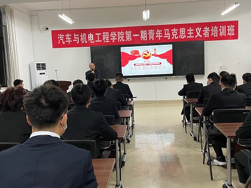 为加强对青年学生的培养教育工作,引导青年学生树立远大理想和不忘初心、永远跟党走的坚定信念,在建党100周年之际,3月14日19:00,汽车与机电工程学院“青马工程”培训班全体学员在2202上了以“学党史 强信念 跟党走”为主题的开班第一课,由汽车学院院长贺剑同志主讲。
